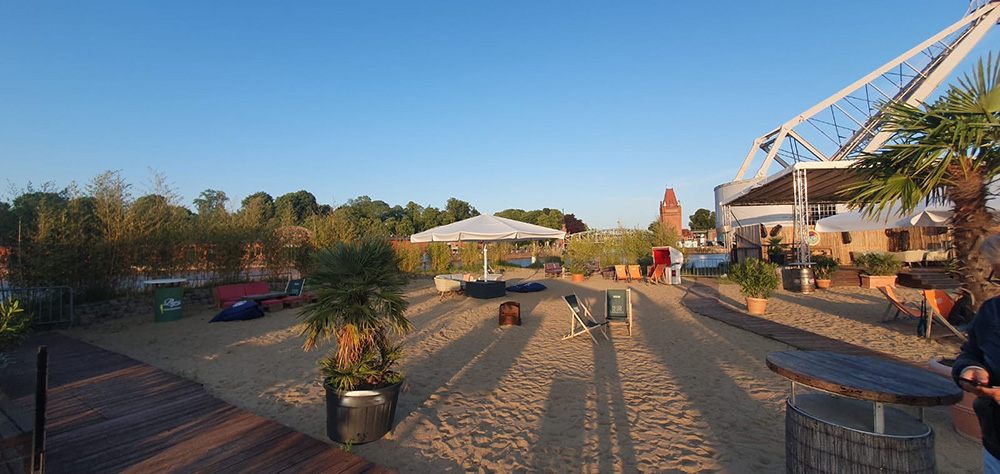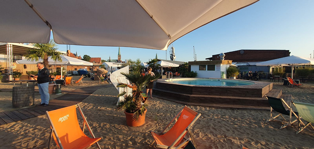 Der Strandsalon Lübeck ist eine Location im Herzen der historischen Kaianlagen. Im Sand, unter Palmen, treffen wir uns direkt am Hafen vor der Kulisse der Altstadt.